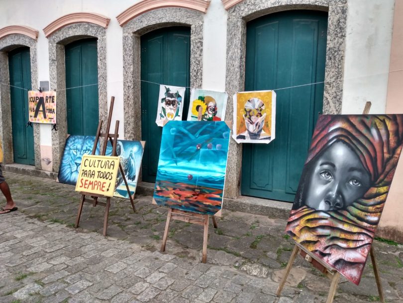 Na tarde do último sábado (30/09), um grupo de vinte artistas realizou uma ocupação artística com exposição de obras e oficinas em frente ao Sobradão do Porto, na Praça Anchieta, no centro de Ubatuba. O objetivo foi chamar a atenção do poder público e da população para o que eles classificaram como “desmanche da cultura no município”.