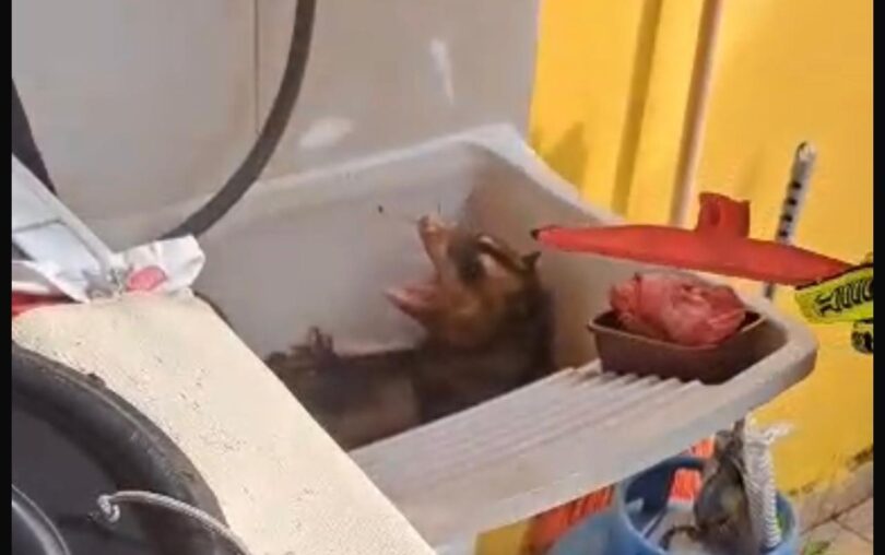 Os moradores de uma residência no bairro Poiares, na cidade Caraguatatuba – SP, acordaram com uma surpresa na manhã de sexta-feira (10), um gambá dormindo dentro do tanque da lavanderia.
