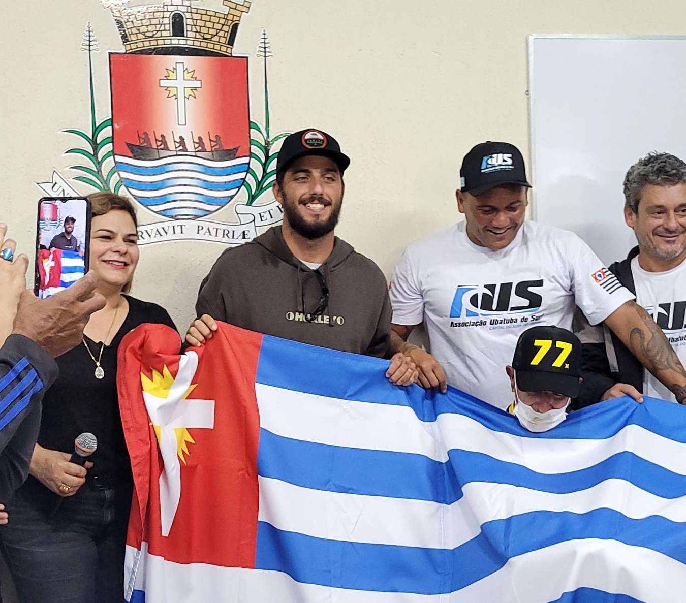 Na ocasião, Filipinho fez questão de agradecer à cidade pelo apoio em toda a sua trajetória e também a da sua família. “Muito obrigado Ubatuba por toda torcida, agradeço de coração. Foram muitos longos anos de trabalho para poder chegar e conquistar esse tão sonhado título – esse trabalho vem desde meu vô com meu pai, ensinando ele a surfar, também da Associação de Surfe de Ubatuba, enfim todo mundo tem parte nisso. Todo mundo aqui tem um pedaço desse título também”, agradeceu o atleta que também recebeu das mãos da prefeita uma bandeira da cidade.