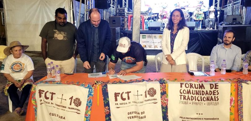 Antes da cerimônia de entrega do TAUS, o grupo se encontrou no Centro Comunitário da Almada para uma reunião do Fórum de Comunidades Tradicionais (FCT), de Angra dos Reis, Paraty e Ubatuba, e do Observatório de Territórios Sustentáveis e Saudáveis da Bocaina (OTSS), com a presença dos representantes da SPU, do Ministério Público Federal (MPF), do Ministério da Gestão e da Inovação em Serviços Públicos, juntamente com o executivo e o legislativo de Ubatuba.