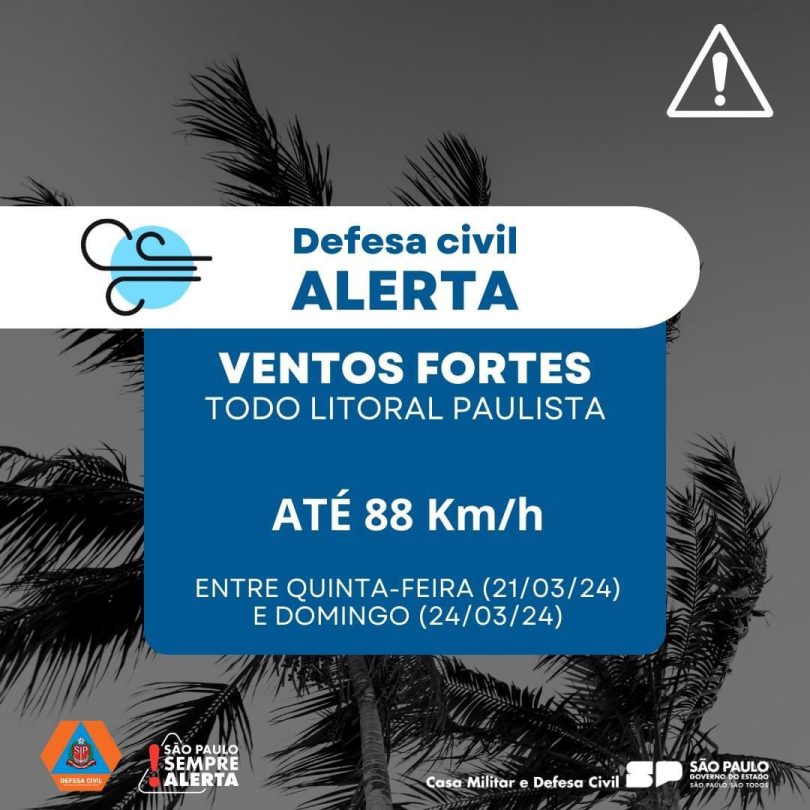 A Defesa Civil do Estado de São Paulo alerta a população para mudança brusca no tempo a partir desta quinta-feira (21). A chegada de uma frente fria pode trazer fortes pancadas de chuvas e ventos fortes, além de uma queda de temperatura.