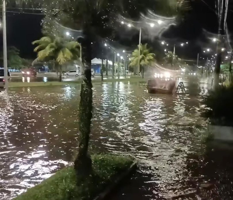 O órgão registrou vários chamados devido aos pontos de alagamentos, entre eles, na região do Jetuba. O escoamento foi dificultado por conta da maré alta durante a madrugada.