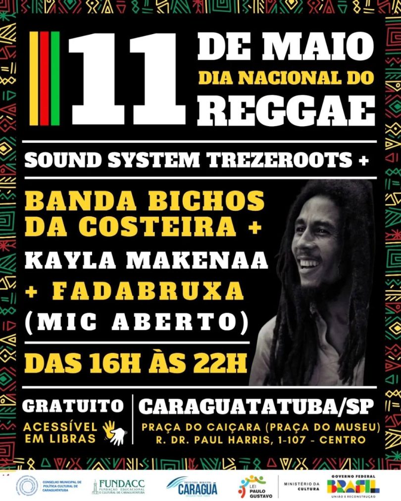 Contemplado através do edital 022-LPG/2023 de Caraguatatuba, o Dia Nacional do Reggae produzido pelo Coletivo Trezeroots Sistema de Som, tem como principal objetivo saudar a cultura jamaicana em seu dia reconhecido nacionalmente/Internacionalmente como a principal data de comemoração do aniversário de morte do maior artista reggae, Bob Marley.