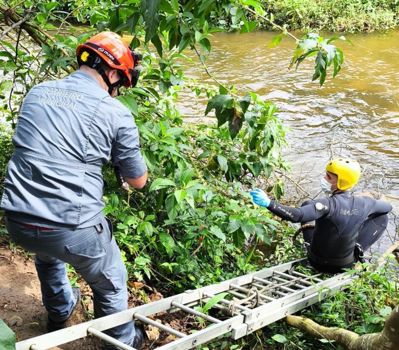 Na manhã deste sábado (11/10), o Corpo de Bombeiros foi acionado para realizar a retirada do corpo de um homem, ainda não identificado, de aproximadamente 55 anos, o qual estava enroscado em galhos no leito do rio Tavares, no bairro da Estufa I, em Ubatuba – SP.