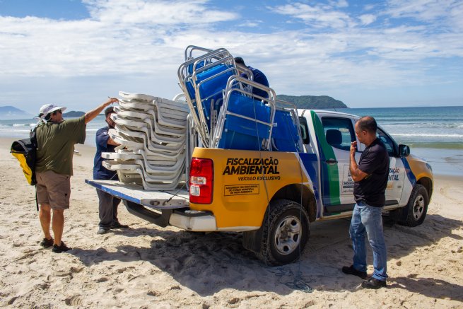 Durante a ação, os fiscais receberam apoio da Polícia Militar e foram emitidos dois autos de apreensão que resultaram no recolhimento de 21 cadeiras, 26 pontaletes, oito espreguiçadeiras, nove mesas e um gazebo.