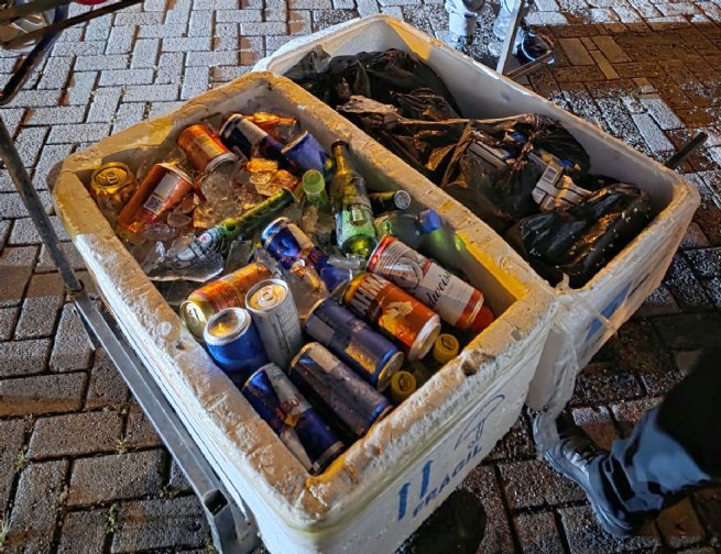 Já no sábado à noite, novamente durante o Verão Show 2026, foram apreendidos um cooler, um isopor com bebidas e um carrinho contendo dois isopores com bebidas.