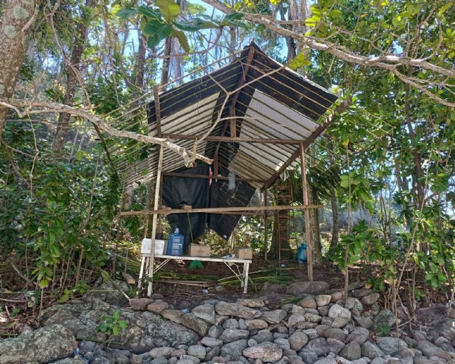 A ação conjunta foi motivada por denúncias e mobilizou uma força-tarefa composta pela Fiscalização Ambiental, Secretaria de Serviços Públicos (Sesep) e Secretaria de Segurança Pública (Segur) por meio da Polícia Municipal. Com o auxílio de embarcações, as equipes acessaram o ponto exato da infração, onde localizaram uma estrutura de madeira e bambu coberta por lonas, além de ferramentas e utensílios de cozinha.