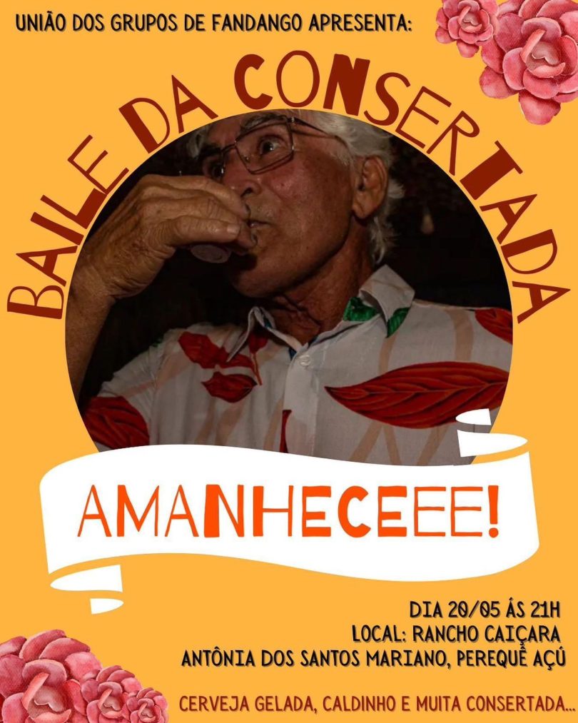 A União dos Grupos de Fandango de Ubatuba realizará neste sábado, dia 20, a partir das 21h, mais uma edição do “Baile da Consertada”, no Rancho Caiçara Antônia dos Santos Mariano, localizado na praia do Perequê-Açu, em frente ao Instituto Argonauta.