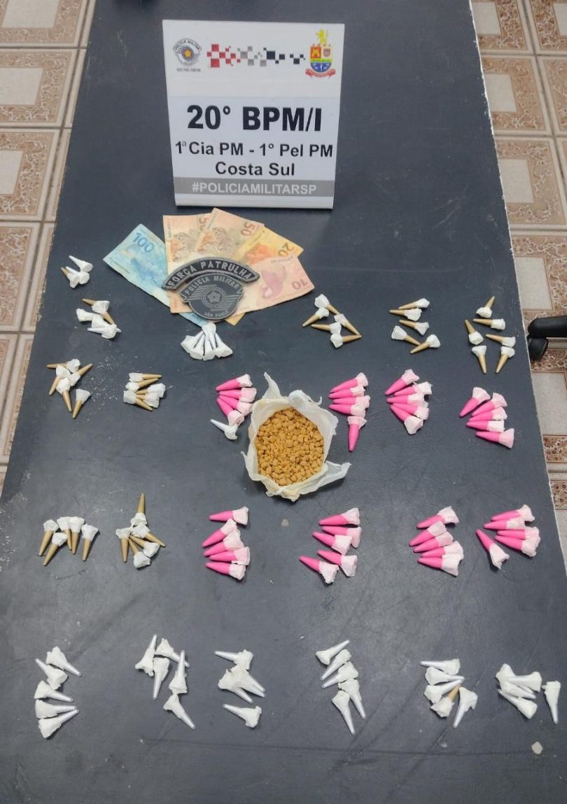 Na abordagem os policiais localizaram em sua mochila crack e cocaína, devidamente separado para a venda.