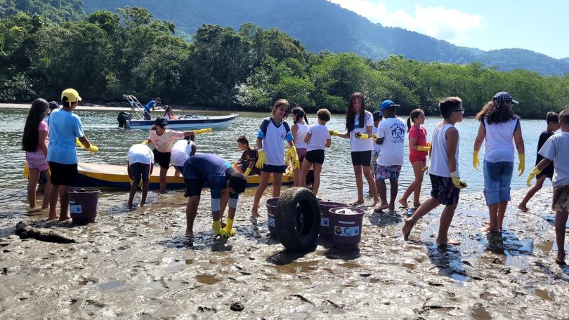 Dezenas de estudantes, escoteiros, sociedade civil e representantes de instituições em Ubatuba estiveram reunidos às margens do Rio Indaiá no final da praia do Perequê-Açu na manhã desta quarta-feira, 22, para participar de uma ação de conscientização ambiental em comemoração ao Dia Mundial da Água.