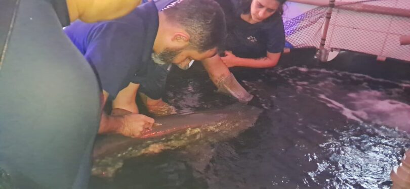 Após a avaliação inicial, a equipe do Instituto Argonauta recolheu o tubarão e o transportou até o Aquário de Ubatuba, instituição que possui infraestrutura e sistemas de suporte especializados