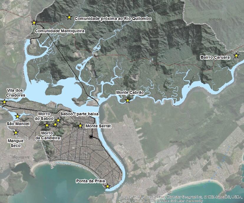 Áreas críticas com vulnerabilidade a risco climático na cidade de Santos – SP