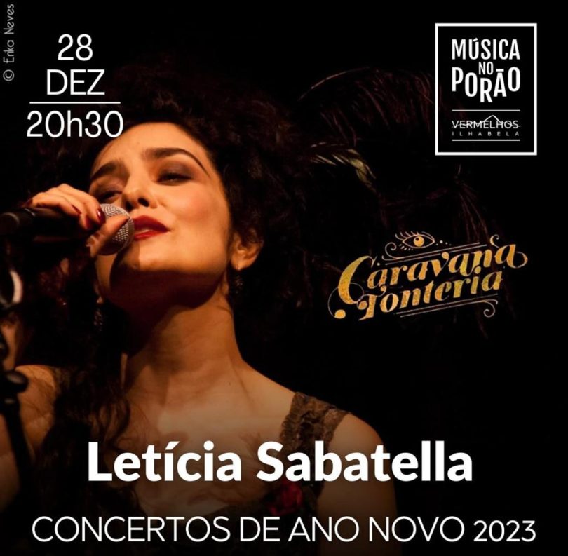 Letícia Sabatella, acompanhada por quarteto liderado por Paulo Braga, apresenta o espetáculo “Caravana Tonteria”, que vem para Ilhabela depois de seu grande êxito nas principais cidades do país. O espetáculo, a ser realizado na Sala do Porão do Teatro de Vermelhos, trará um repertório especial de grandes autores como Chico Buarque, Tom Jobim, Caetano Veloso, João Donato e Arrigo Barnabé, além das composições autorais de Letícia Sabatella. Com Fernando Alves Pinto, Serrote, violão e voz – Paulo Braga, Piano – Zéli Silva, Contrabaixo acústico – Daniel D’Alcântara, Trompete.