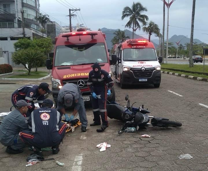 Uma equipe do Corpo de Bombeiros foi acionada na manhã deste sábado (18), para atender uma ocorrência de queda de motociclista em via pública na Av. Geraldo Nogueira da Silva, no bairro do Indaiá, na cidade de Caraguatatuba – SP.