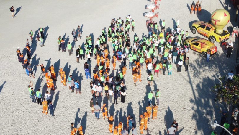 O grupo teve apoio de 10 caminhões, 12 máquinas e uma equipe técnica de limpeza com mais de 200 pessoas, além do suporte de coleta seletiva com a Cooperativa de Catadores Coco&Cia.