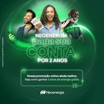 A promoção “Neoenergia paga a sua conta” está de volta para sortear R$ 500,00 em créditos para consumidores adimplentes residenciais e rurais nas cinco distribuidoras – Neoenergia Elektro (SP/MS) Neoenergia Brasília (DF), Neoenergia Coelba (BA), Neoenergia Cosern (RN) e Neoenergia Pernambuco (PE). A novidade é que agora o prazo da premiação dobrou de um para dois anos. Dessa forma, os vencedores podem obter um total de créditos, nas tarifas de luz, de até R$ 12 mil ao longo do período, conforme o consumo de energia.