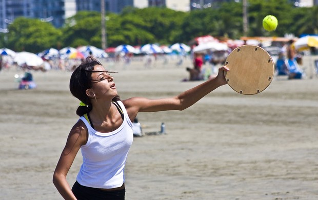 Nasceu por volta de 1937, com a vinda de dois italianos, os Danadellis, que traziam dois “pandeiros” de aro de madeira e tampa de couro, com cerca de 35 a 40 cm de diâmetro. Ficavam jogando uma bola, um para o outro, em distâncias de cerca de 100 metros, nas praias, sem qualquer quadra ou rede. Com a continuação vieram as quadras, com 20, 18 e, por fim, 17 metros, que é a atual. A rede usada a princípio era a de tênis; hoje já são feitas exclusivamente para o esporte.