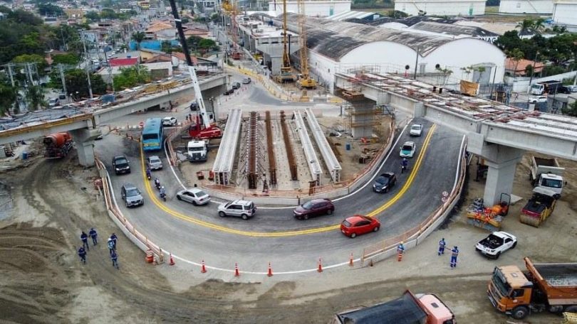 Obras de novo viaduto tem rotatória provisória no acesso para Topolândia e Costa Sul de São Sebastião