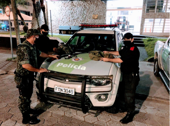Em uma mochila, a polícia ambiental localizou três lanternas e uma espingarda, calibre 36.