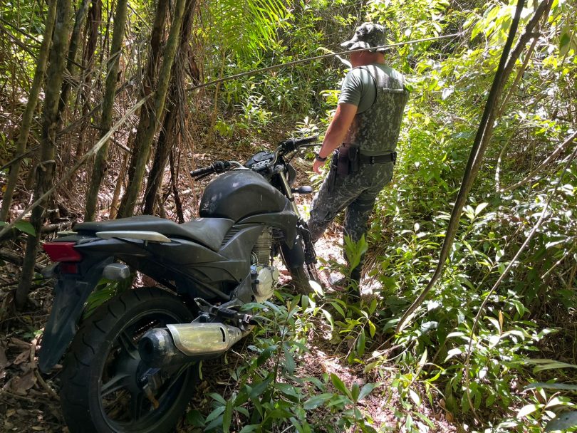 Uma equipe da 5ª Companhia de Polícia Militar Ambiental Marítima, realizava patrulhamento preventivo por terra, durante “Operação Impacto, Piracema e Verão” na cidade de Ubatuba, quando nas proximidades das margens do Rio Maranduba, avistaram dois indivíduos de estatura mediana saindo da mata empurrando uma motocicleta de cor preta e sem placa.