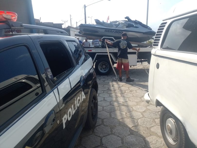 Os investigadores entraram em contato com a Polícia Militar da cidade de São Vicente e conseguiram localizar o Jet Ski .