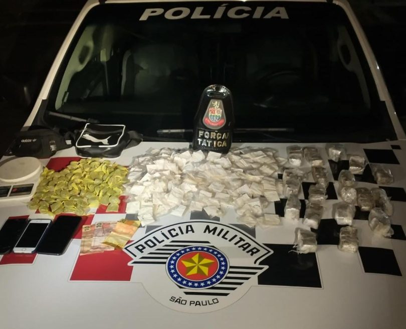 A equipe policial realizava patrulhamento pelo bairro, quando visualizou dois indivíduos na praça de um parque infantil, em atitude suspeita e os abordaram. Na busca pessoal os policiais encontraram 46 porções de cocaína, 42 porções de maconha e R$ 40,00. Indagados a respeito das drogas, confessaram o tráfico pelo região e indicaram uma casa próxima que armazenava e embalava os entorpecentes.