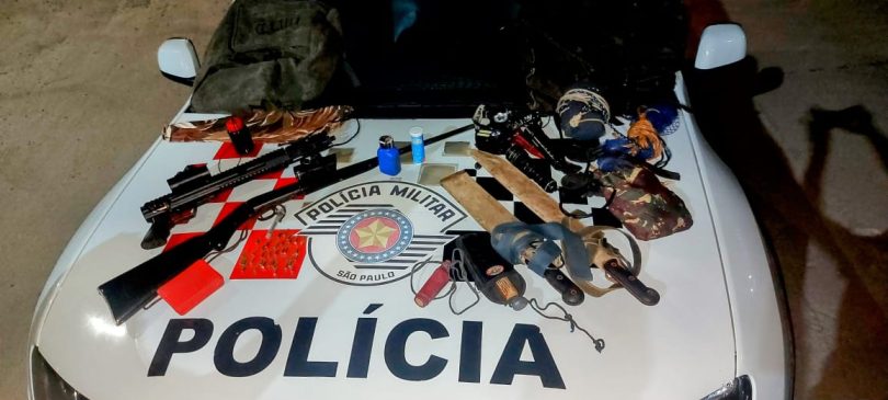 Os policiais abordaram os suspeitos que confessaram estar com armas dentro do veículo, sendo que seriam usadas para caça. Na busca veicular, foram localizados diversos apetrechos para caça e duas armas, sendo uma espingarda (rifle) calibre 22 com luneta e uma arma carabina de pressão calibre 6.35 (pcp) com luneta.