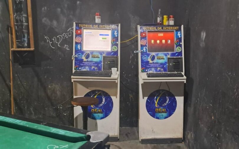 Durante a ação policial, duas máquinas caça-níqueis foram localizadas no estabelecimento, devidamente apreendidas e lacradas, permanecendo à disposição da Justiça para as providências cabíveis.