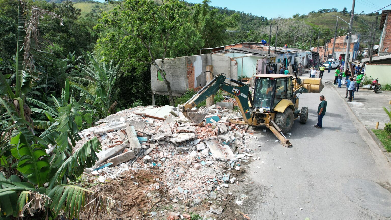 O trabalho foi coordenado pela equipe da Secretaria de Serviços Públicos e foi utilizada uma máquina retroescavadeira para deixar os locais inabitáveis. A remoção de todo o entulho deve continuar durante a semana.