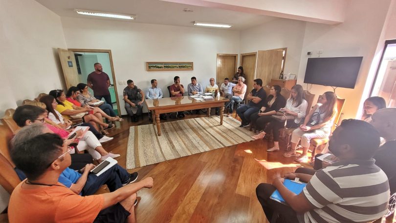 Na manhã desta terça-feira (11/4), no Paço Municipal, foi realizada uma reunião com representantes das secretarias municipais de Educação, Governo, Segurança Pública, Gabinete do Prefeito; Polícia Civil e Militar; gestores das escolas Estaduais e particulares da cidade e os vereadores, Leléco Augusto e Gabriel Rocha, para debater sobre as principais ações no reforço da segurança das escolas.