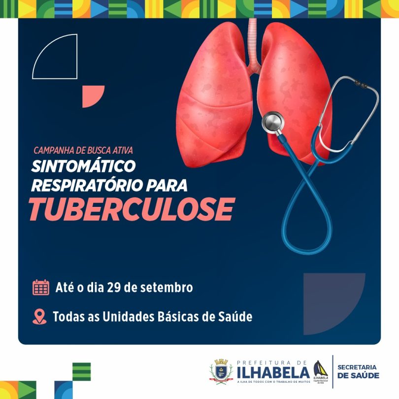 A Prefeitura de Ilhabela, por meio da Secretaria de Saúde, realiza a Campanha de busca ativa de sintomáticos respiratórios para tuberculose nas Unidades Básicas de Saúde até o dia 29 de setembro com o objetivo de identificar pacientes com sintomas da doença, visando o diagnóstico precoce e início do tratamento.