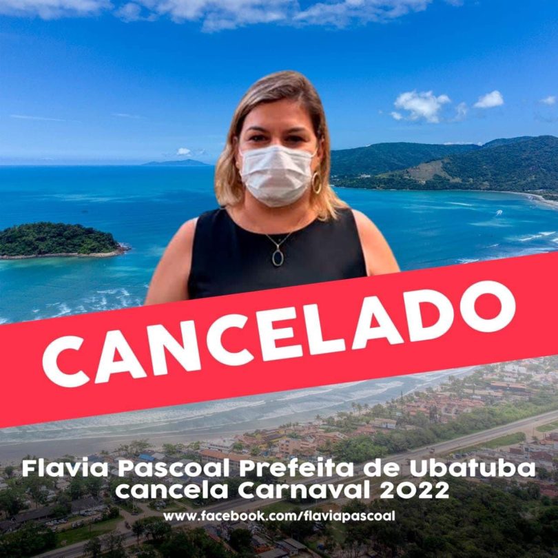 A prefeita de Ubatuba, Flávia Pascoal, divulgou uma imagem em suas redes sociais em que anuncia a suspensão da edição de 2022 do carnaval de rua no município.