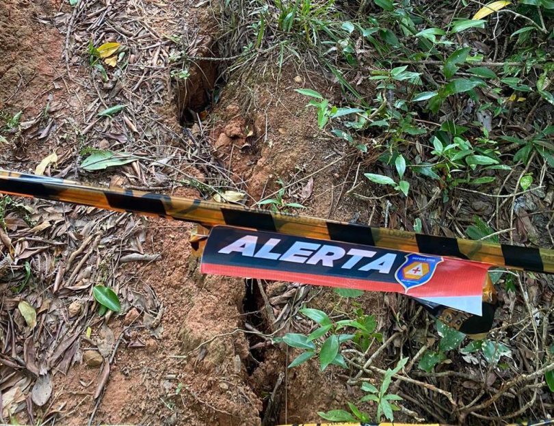 Os agentes da Defesa Civil de São Sebastião realizaram a demarcação da rachadura para monitoramento, uma área de aproximadamente 300 metros lineares.