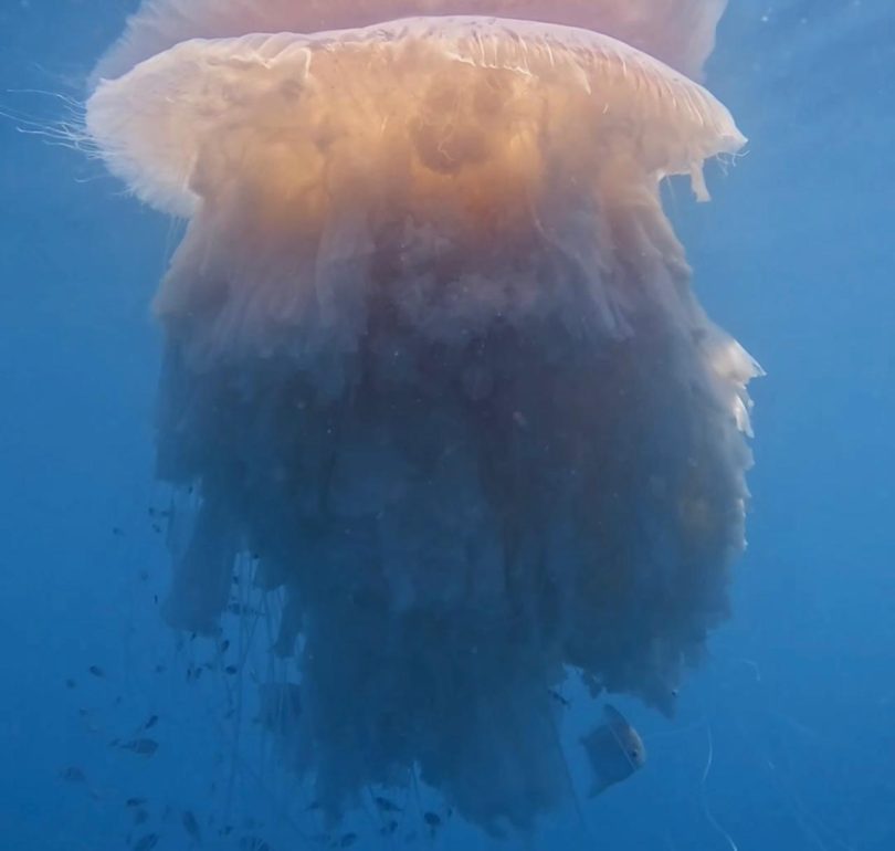 “Vale a pena ver o vídeo inteiro e reparar nos detalhes dela e nos peixes que usam seus tentáculos como abrigo, proteção contra predadores e fonte de alimento! O diâmetro dessa água-viva linda é de aproximadamente 60cm e seus tentáculos mais finos e compridos passam dos 10 metros” concluí.