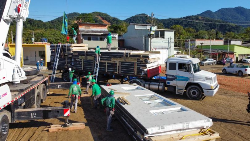 Um prédio por semana. Essa é a estimativa para a construção das moradias sustentáveis no bairro Baleia Verde, em São Sebastião. Os apartamentos, cuja obra é realizada pelo Governo de São Paulo, serão destinados a centenas de famílias afetadas pelas chuvas extremas que atingiram o Litoral Norte em fevereiro.