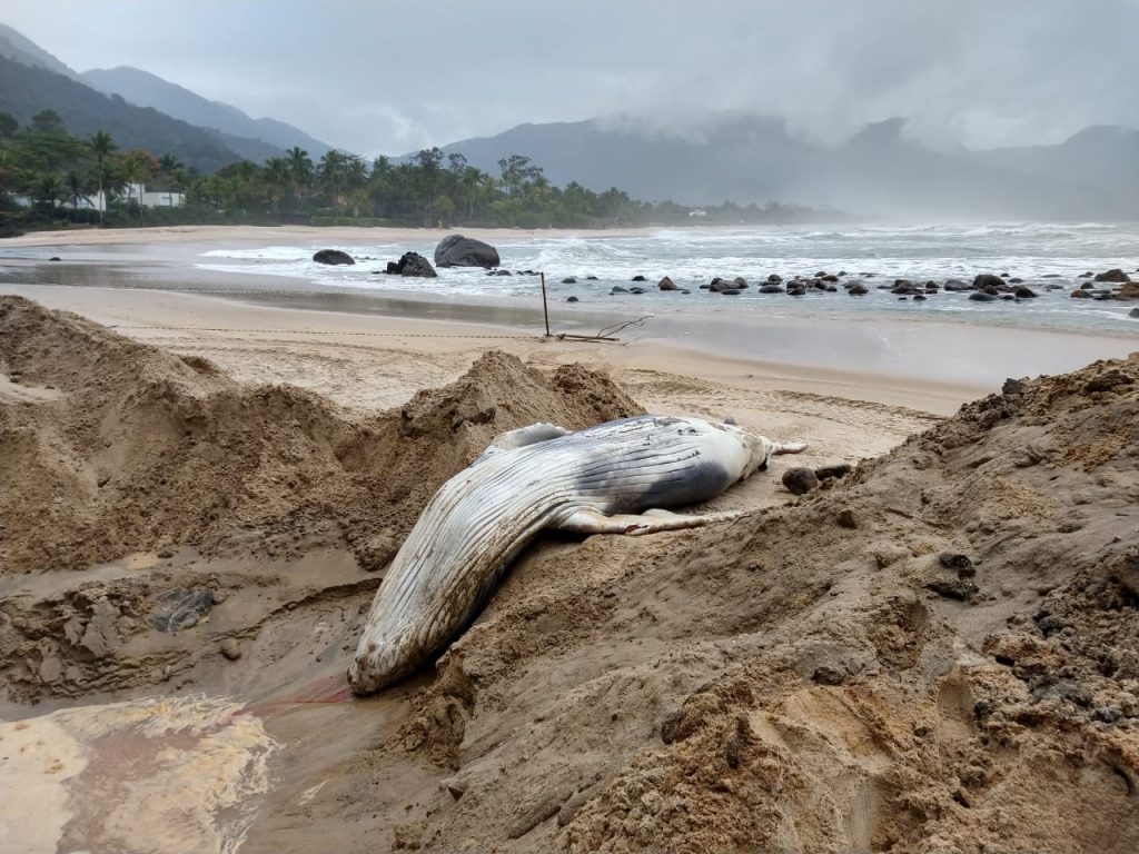 Um filhote de baleia jubarte apareceu morto na tarde da última terça-feira (20), no canto do Moreira na Praia de Maresias, no Litoral Norte do Estado.